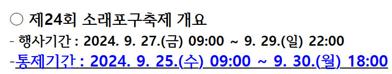 일시 : 2024년 9월 27일(금) ~ 9월 29일(일)